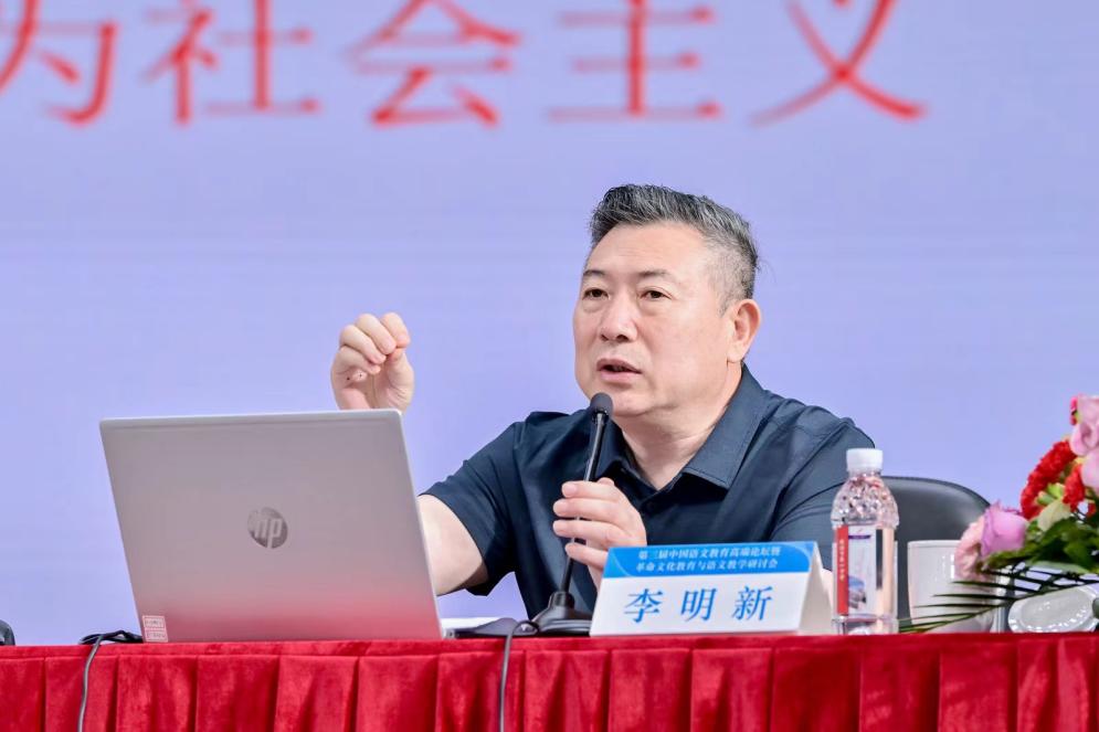 开幕式后,论坛进入主旨报告和案例研讨环节。教指委语文专委会主任委员、北京小学校长李明新做《在语文教学中继承和弘扬革命文化的思考》主旨报告。报告指出,教学者要立足语文课程特点、提高施教水平,从学科教学走向学科育人。教指委语文专委会副主任委员、北京师范大学康震教授做《风展红旗如画——毛泽东诗词的理想信念和史诗境界》主旨报告。报告分析毛主席诗词中诗史的精神和史诗的境界,提示教师要在充分理解的基础上激发学生的革命文化情怀。