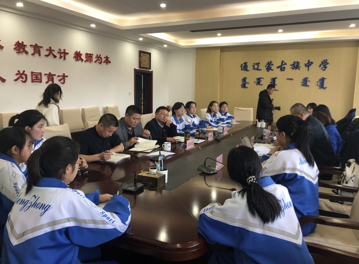 3月16日下午,问诊访谈活动第二场,苏君阳教授一行来到通辽蒙古族中学。参与本次问诊活动的领导有通辽市教育局教师工作科于志忠副科长、通辽蒙古族中学王宝龙校长、都仁仓副校长、金宝山副校长等。