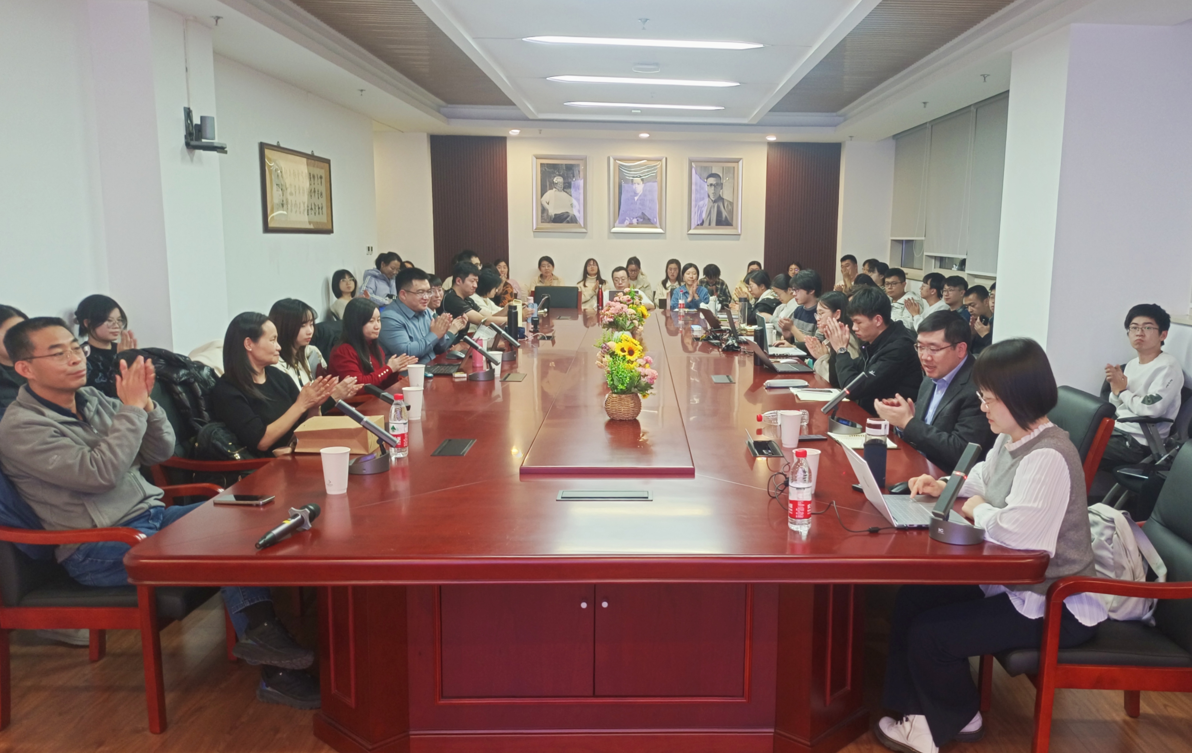 提问环节中,在场师生就“她明年参加高考了”“这面包还能吃了吗”等句子的语感问题与范晓蕾老师进行交流,探讨“了2”隐现的可接受度与方言背景的关系。余德江老师还同范晓蕾老师针对“自下而上”的研究范式中“上”的重要性问题充分交换了意见。最后,讲座在热烈的掌声中落下帷幕。