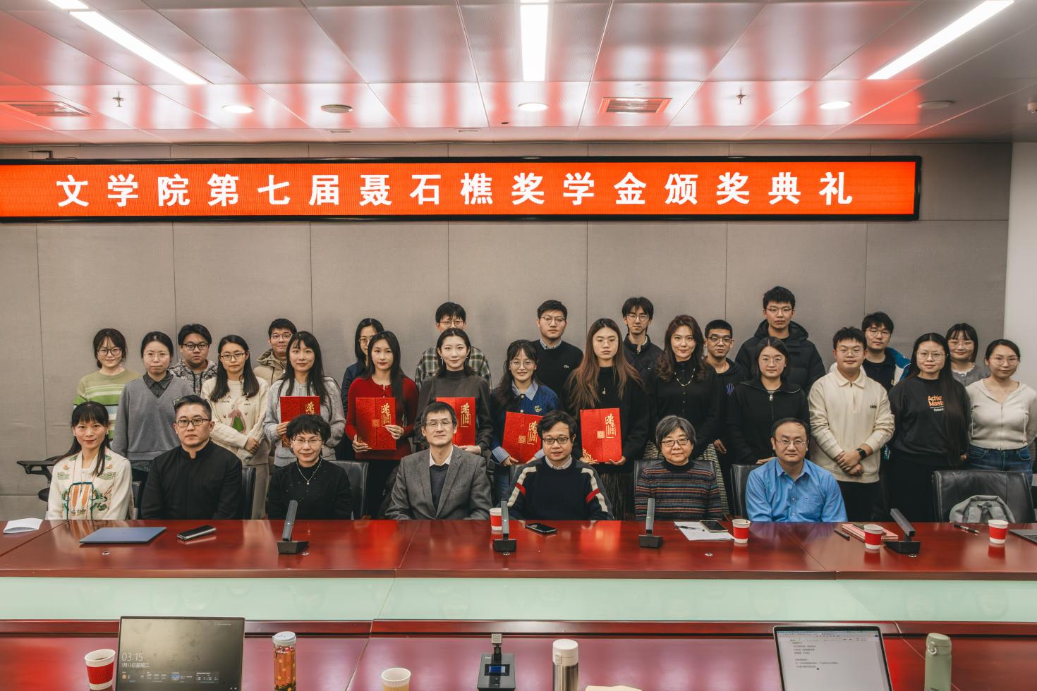 2026年1月13日,第七届bet365最新网址-bet365亚洲最新中文网址 聂石樵奖学金颁奖仪式在bet365最新网址 5049会议室举行。聂石樵奖学金执行人聂大昕老师,古代文学研究所马东瑶、李小龙、周剑之、谢琰、莎日娜、刘全志、颜子楠、吴沂澐、余丹、任刚、崔振鹏等老师出席,二十余位古代文学专业的硕士、博士研究生参加了此次颁奖仪式。仪式由中国古...